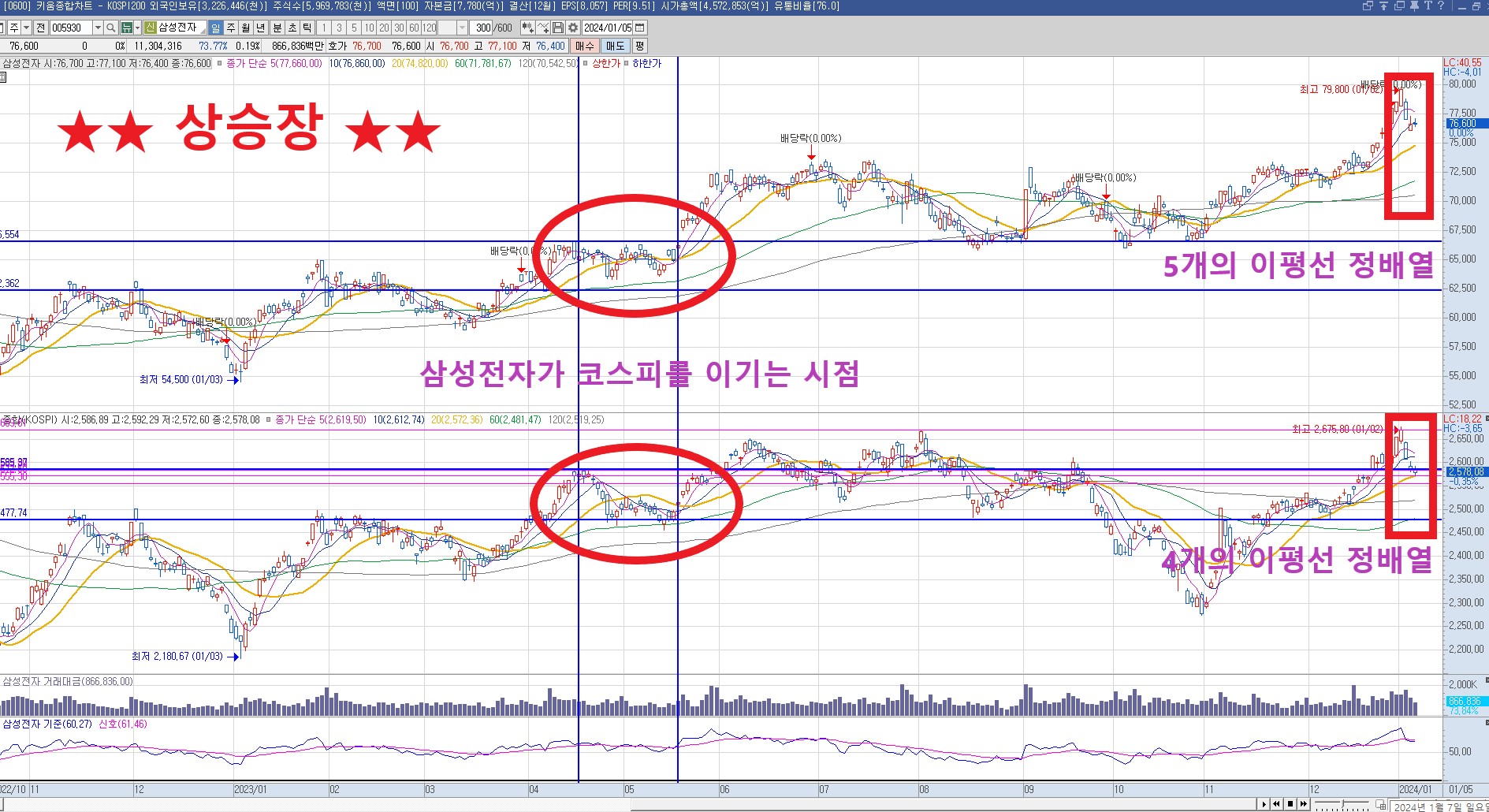 심지어 삼성전자는 현재구간 5개의 모든 이동평균선이 정배열이고,