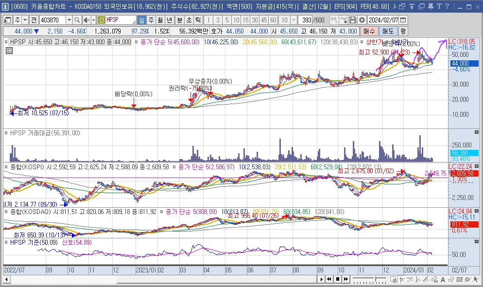 보라색으로 제가 화살표 표시한 부분이 HPSP 신고가 패턴입니다