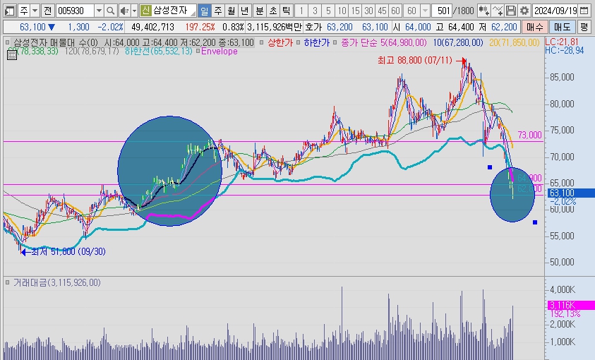 62800원 내외로 바닥확인을 하러 내려오지 않은 흔적이 있습니다